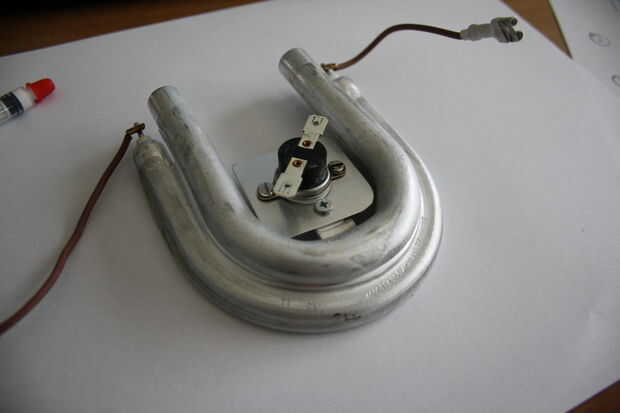 Por lo tanto, para asegurarse de que la temperatura del elemento hasta la temperatura adecuada tienes que usar un termostato. Esto interrumpe el circuito eléctrico cuando alcanza la temperatura de parada del termostato. Utilicé un termostato de 105 º C, justo por encima del punto de ebullición pero estoy pensando en otra inferior (90° C por ejemplo) podría funcionar tan bien si no mejor.