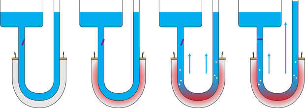 El elemento de calefacción es la parte esencial de la cafetera. Calienta el agua para que comience a hervir. Esta es la forma en que funciona: el agua pasa por el elemento de calefacción hasta que esté nivelada (vasos comunicantes). Cuando la cafetera se enciende el elemento calefactor empieza a calentar hasta que el agua comience a hervir. Por lo tanto el agua desea ampliar y que empuje hacia arriba. En el lado del depósito del agua hay una válvula que hace que el agua no sube por ese lado, por lo tanto lo empuja por el otro lado hacia arriba.