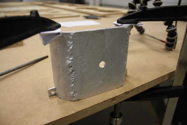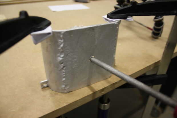 Perfore un agujero del tamaño del interruptor. Usé el taladro de tamaño más grande pudo encontrar y luego dijo con voz áspera al tamaño exacto. Asegúrese de que este es el lado donde el elemento de calefacción no es fijo.