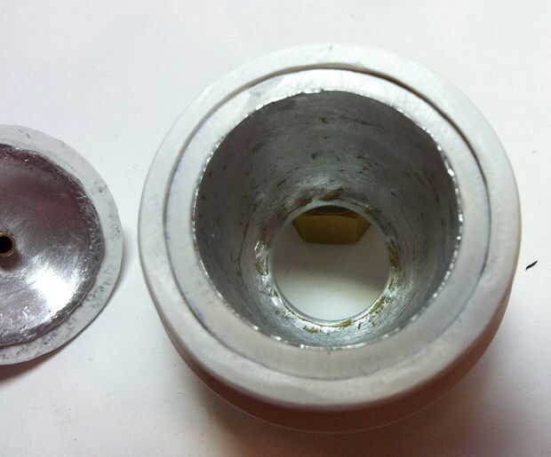El fondo de la lata era ya con cúpula, por lo utilicé para la parte interior con forma de cúpula de la cámara de agua.