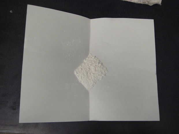 1. Si el mortero están disponibles los utilice para moler las pastillas, si no poner las pastillas en una hoja de papel.