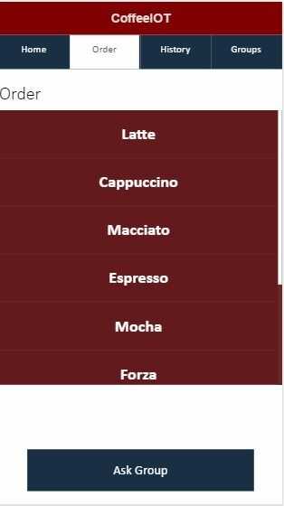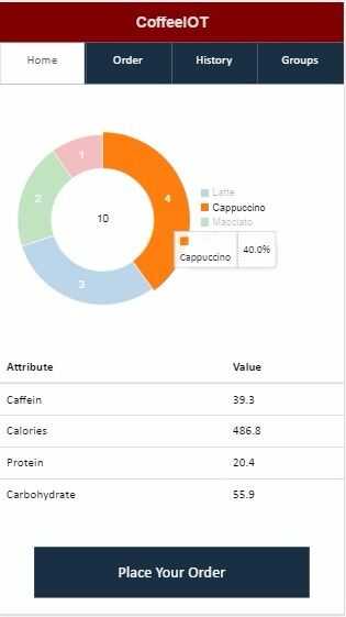 - Consumo de café es simplemente una persona normal como tú y yo! Y de ninguna manera me gustaría hacer un montón de problemas para obtener una taza de café! ¡No es posible! Así que hemos creado una aplicación donde el usuario puede poner la orden antes incluso caminando hacia la máquina de café con su elección de café. Ahora los detalles de la orden se guardan en la nube! eso es todo y él puede tomar su orden desde cualquier lugar dentro de su edificio de oficinas.