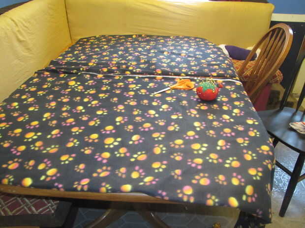 Corté trozos de tela de 56 pulgadas de largo. Uno para el frente y uno para la espalda.