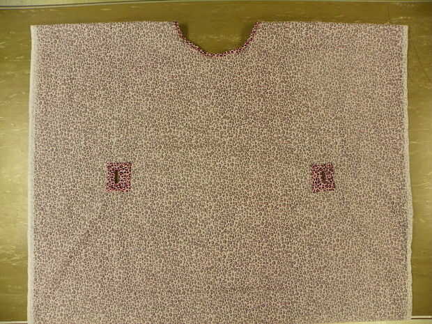 Doble el caftan en la zona del hombro, mal lado hacia fuera. Mida 20" hacia abajo desde el hombro. (Justo debajo de los orificios para la correa) Esto es donde usted comenzará a coser la costura lateral. Coser unos 18" con margen de costura de 1/2". Repita en el otro lado.