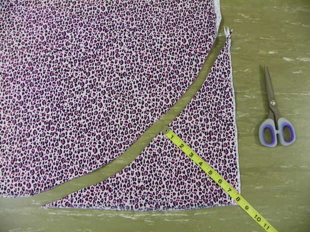 Tomar la cinta métrica y medir 8" a partir de las esquinas inferiores. Cortar las esquinas en esta marca. Esto evitará que las esquinas arrastrando en el piso cuando está desgastado el caftán. Dejar de lado el corte de piezas, los necesita para hacer frente a la abertura del cuello y los agujeros para el cinturón.