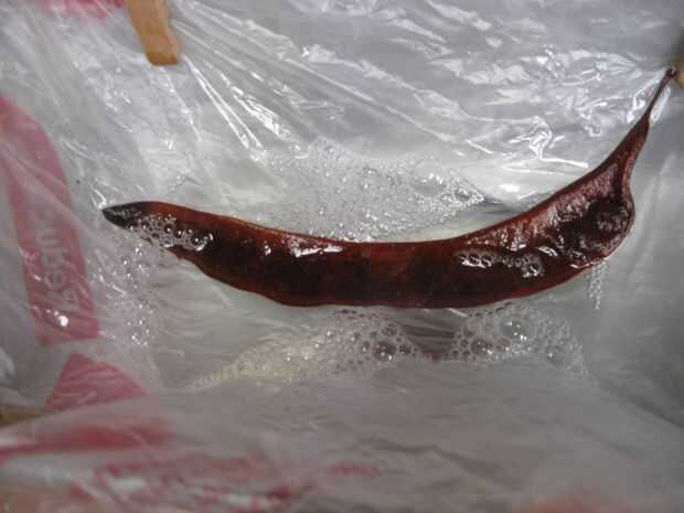 Retiradas las vainas húmedas o papel encerado o en la pantalla ligeramente elevada o tela metálica. Asegúrese de que hay un buen cojín de papel debajo de las vainas húmedas para absorber cualquier goteo cera.