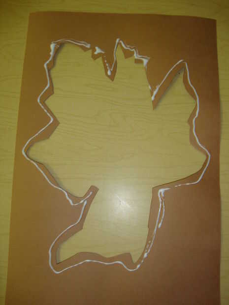 Cuando estés listo para pegar los filtros, voltear su plantilla para que el diseño de la hoja es cara abajo. Usando una línea fina de pegamento ir alrededor de la plantilla de la hoja. Llegar cerca del borde de la hoja dejando sólo un 1/4 de un pulgada de espacio.
