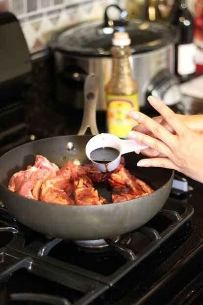 Agregue 4 "Cucharadas" de salsa de soja, estoy bastante seguro de que puede conseguirlo en cualquier tienda estos días.  Recuerdo en su día, mis padres nos llevaría a Boston y mi mamá que desplazarse por todas las calles del barrio chino para encontrar un mercado chino.  Los fuertes olores de hierbas asiáticas y medicamentos impregnan el aire y la gente se estaría hablando rápidamente en China.  Conseguiría a menudo escoger un dulce favorito antes de que nos dirigimos a casa.  Ahora usted puede conseguir esto sin la impulsión de 45 minutos pero probablemente todavía puede ir para la auténtica experiencia cuando usted va a encontrar el vinagre negro y el vino de cocina ahora!