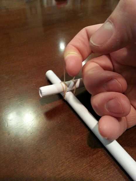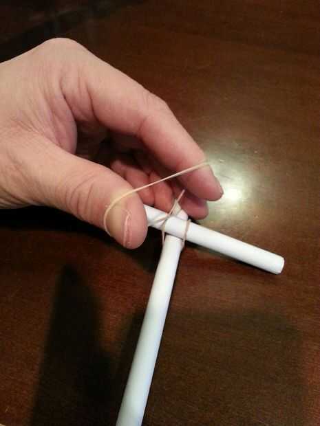 Cada unión se realiza mediante dos tubos de "amarre" con una banda elástica.