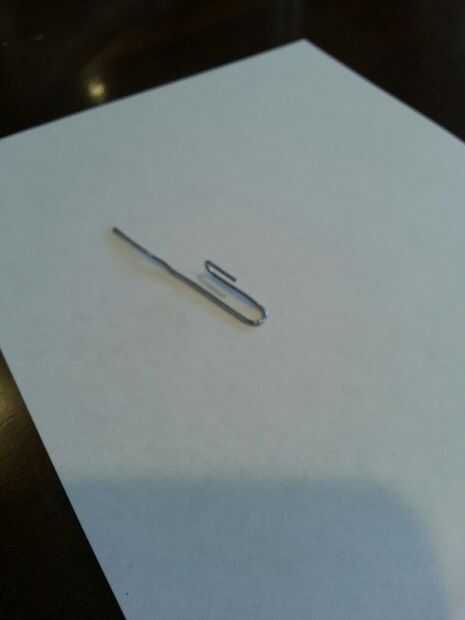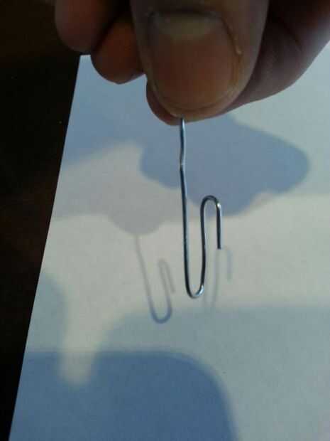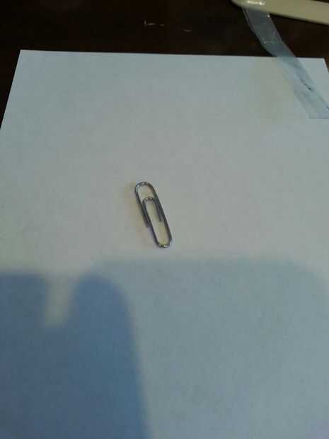 Tome el extremo corto y rotar a 90 grados. Esto dejará 2 bucles en el clip de papel. Quien le aguante la banda de goma proporciona la tensión, el otro descansará sobre el depresor de lengua (siguiente paso).