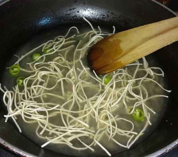 Caída de pollo sopa de fideos de huevo (6 / 8 paso)