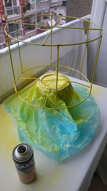 Usé a una vieja tela de la cortina para la cubierta. Usando cinta de doble cara es realmente una buena idea como muestra toda la pantalla haciendo las instrucciones en la web. También pinté la tela amarillo pero olvidaron tomar Foto :)