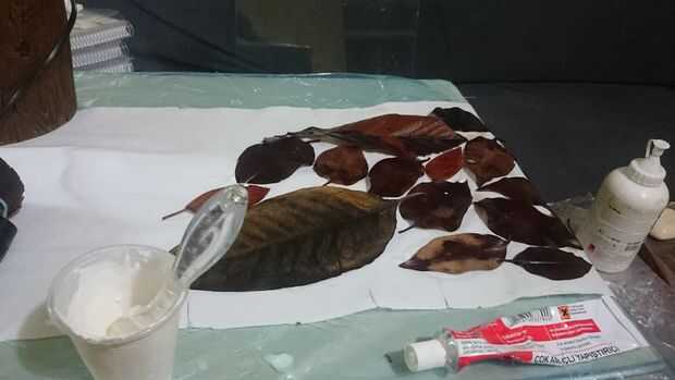 Así, cuando por fin todo está listo, utilicé pegamento de madera de hojas. Fue realmente duro para mantener a todas las partes de una hoja a la tela. Cuando se combina con mi falta de talento, casi me di por vencido y aunque sobre la compra de un libro en su lugar, me alegro de que no :)