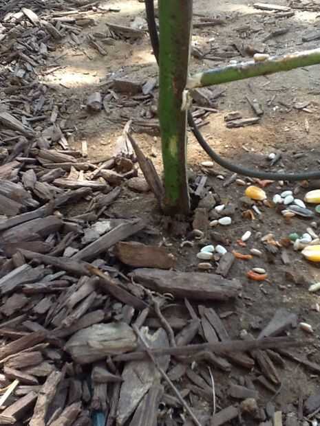 Tomar sus dos bastones de apoyo y corte un extremo en cada uno de ellos en puntos. Luego tallar una ranura pequeña en cada uno al mismo nivel. Después de esto coloca 1.5 pulgadas de profundo en el suelo cerca de 8 pulgadas de distancia.