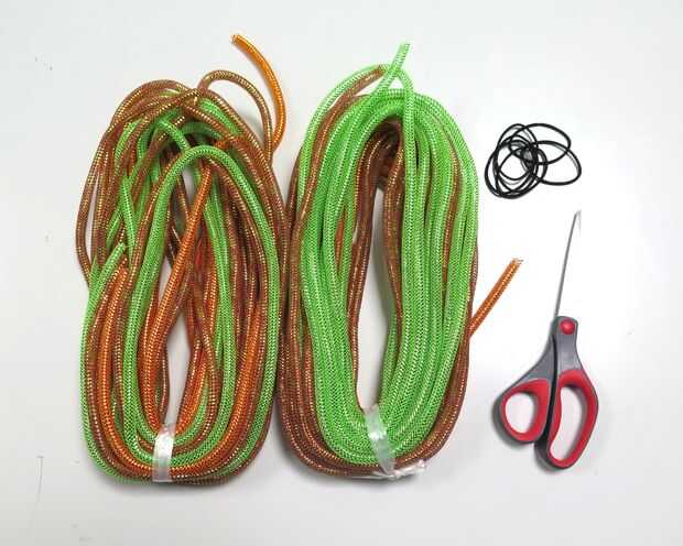- acoplamiento de tubería (a veces llamado Cyberlock o crin y viene en diferentes colores y espesores. He utilizado 5 yardas de naranja y 8 yardas de bronce para cada caída. Usted puede utilizar más o menos dependiendo de lo completa que desea.)