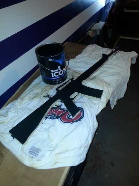 Brocha o rodillo su hasta usted. Utilicé unas abrazaderas de plástico y enganchado a una luminaria para pasar el rato.