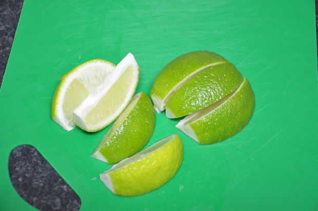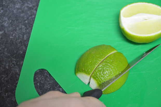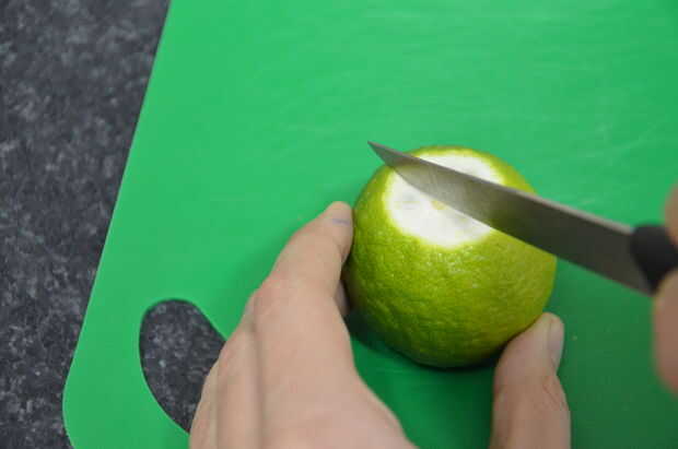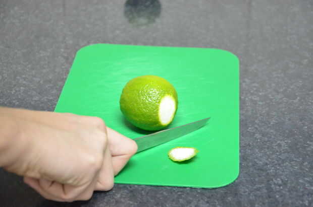 2. Machaque los dos ingredientes juntos, pero ten cuidado! No triturar demasiado o te "raya" cáscara de cal, que lo que le dan un sabor amargo. No queremos!