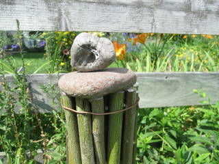 Elija una ubicación para la estructura en su jardín. Conducir la varilla en el suelo por lo menos un pie y lo suficientemente profundo para que el paquete ocultará. Deslice el PVC en el paquete sobre la varilla. Añadir algunas rocas o piedras planas en la parte superior para completar su cairn.