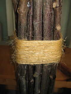 Coloque el PVC y una rama para que la alineación de tapas y tener por lo menos dos lugares donde tocan. Aplique una tira de pegamento de 1" en la parte superior para unirse a la rama y el PVC. Cuando el pegamento se endurece, agregue otra capa de pegamento a la rama y el PVC en la parte inferior. Continúe añadiendo ramas, asegurándose de que la alineación de tapas y girando el paquete como usted añade ramas. Mantenga el PVC más o menos centrado. Para agregar interés, envuelva una sección de 2-3" con cordel, cuerda delgada o con cable.