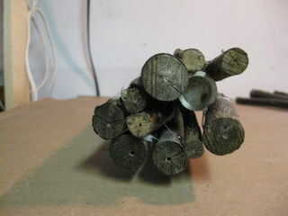El método original de la Asamblea era simplemente hacer un manojo de ramas con el PVC más o menos centrado. Realizaron juntos, superior e inferior, con alambre de cobre. Con el tiempo, viento y gravedad causado algunos cambios así que decidí probar otro enfoque. El paquete fue desmontado y reconstruido en forma más segura.
