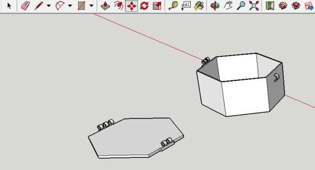 Creando su caja es fácil, sólo debes elegir tu forma y tus medidas. Asegúrese de que encaje en la placa de la impresora 3D, esto es clave. Nuestro primer diseño no montar la placa, así que asegúrese de que se ajusta antes de empezar a construir su bisagra. Cuando crear tu caja no olvide añadir una capa de espesor para las paredes y el piso de la caja para que no termina por ser.2 mm de espesor porque en ese espesor incluso PLA no es muy fuerte.