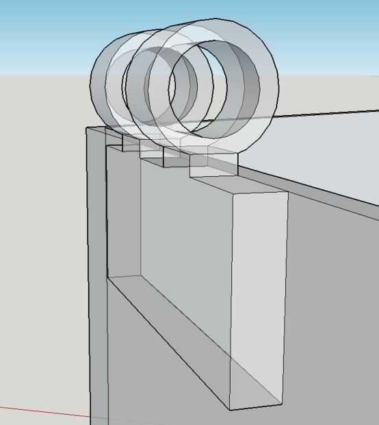 Encontrar el centro o punto medio de un lado de su caja acabada de SketchUp, le sugerimos utilizar directrices para luego marcar el punto medio. Luego copie la cara posterior de la bisagra de un estilo, ya sea el anillo tres o dos. Coloque el punto medio de esta cara en el punto medio en la parte superior de la caja y luego borrar la cara que se solapan en la caja. eliminar la cara posterior de la bisagra y hacia ese lado de la parte hueca de la caja que ahora es una forma de entrada perfecta para su bisagra. Esto se hace para conseguir paseo de algunas líneas innecesarias que podrían complicar las cosas más tarde durante la parte del proceso de corte e impresión. repita cada vez que tienes que conectar una bisagra a otra superficie.