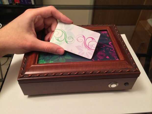 He intentado hacer un bloqueo para complementar la caja de la joyería. Primero trataron de hacer una cerradura usando Arduino; sin embargo, muchos de los tutoriales que he visto eran demasiado caros, demasiado complicado, o no explicar cómo hacer lo que ellos mostraban. Además, los sensores RFID son caros, por lo que la caja de recuerdo de Arduino que se muestra en la imagen estaba fuera de cuestión.