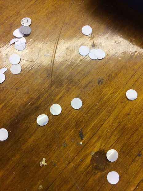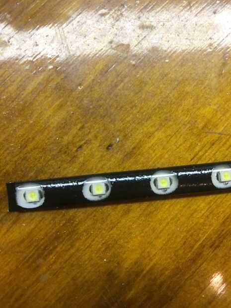 Utilizando una perforadora, perfore orificios en una pegatina o etiqueta y palo estas piezas redondas de papel sobre los LEDs individuales, luego pintar la franja negra y retire estas etiquetas. Posición de los LEDs alrededor del borde de esta pieza y taladre dos orificios pequeños, enhebrar los cables a través de estos agujeros antes de soldar el clip en.
