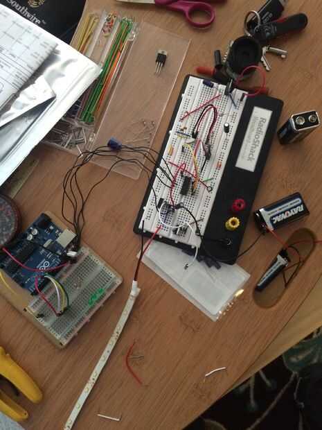 Primero construí el circuito en protoboard con los cables de puente a una placa Arduino Uno. Después de todo estaba trabajando construido un circuito independiente y probado para asegurarse de que todo estaba funcionando correctamente.