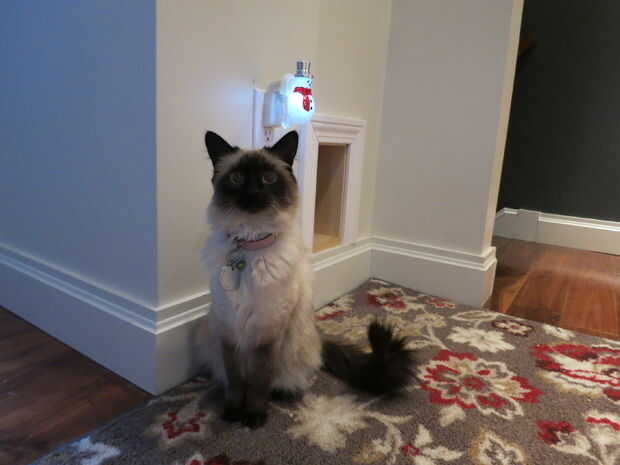 Es bastante voluminoso, fugas de camada cuando el salto de los gatos hacia fuera y no desea el flujo de tráfico doméstico normal. En nuestra casa, teníamos sentado en un baño libre hasta lo necesario para los huéspedes. En lugar de que nuestros amigos sufren con pies de arena, decidimos trasladarnos a un armario.