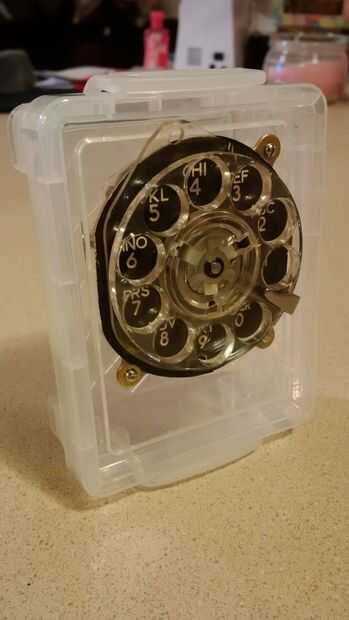 Puso el mecanismo de marcado con disco giratorio en la placa de cara y tomó ventaja de ser claro por el dibujo en la parte que sobresale a través del caso con un marcador Sharpie negro. Después de eso simplemente se utiliza una broca normal en mi herramienta Dremel y perforó un agujero en el plástico directamente sobre la línea negra y luego hizo un seguimiento de la línea mientras se talla la forma de lo plástico.