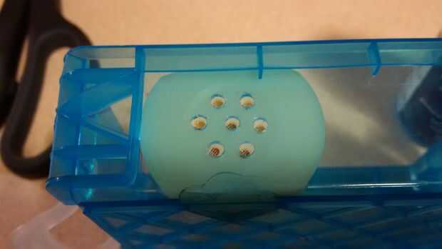 Todo exceso plástico quemado o rotos alrededor de los orificios que creé fue quitado con un bisturí o una cuchilla de afeitar.