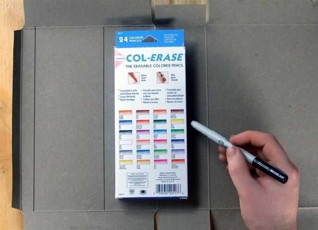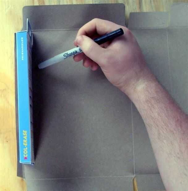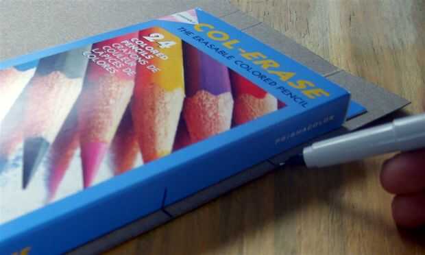 La caja de lápiz sí mismo se cortará para doblar y formar el soporte de caballete. La posición de la corte dicta el ángulo de la base. Un corte más alto significa que el caballete se pone detrás más lejos.