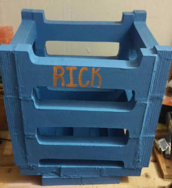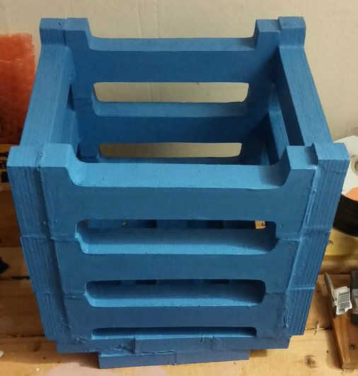Se trata de un simple cajón de madera, hecho de una sola sobra cerca madera de pino y un pedazo de madera desechado. Se une por una combinación de pegamento para madera, clavos y una rudimentaria lengüeta y ranura.Es sorprendentemente ligero (siendo