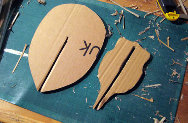 Los archivos de plantilla utilizan estimaciones conservadoras para las ranuras de montaje, por lo que tendrá que ofrecer las piezas individualmente para obtener exactamente el ajuste correcto para tu cartulina del tamaño. Toma un poco de ensayo y error, pero persisten porque esto se ve muy bien cuando esté terminado.