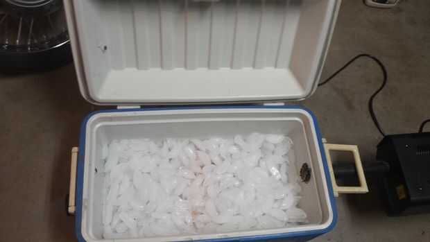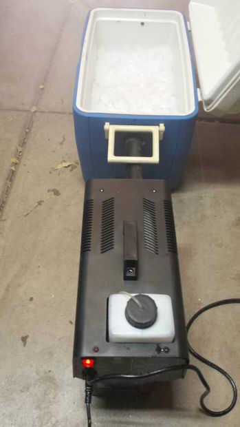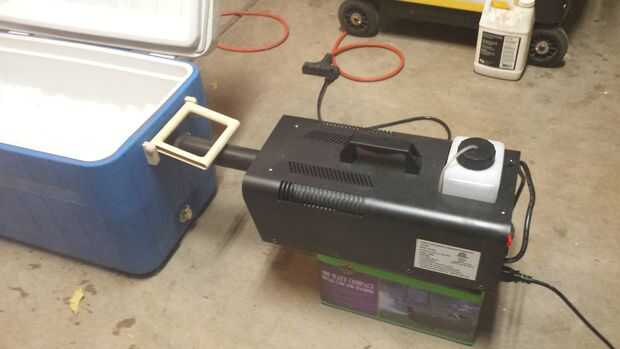 Siempre realizar una prueba de funcionamiento antes de configurarlo en su producción. Usted querrá asegurarse de que todo funciones que quieras. Los primeros años que este conjunto, se utilizó hielo seco. El problema es el hielo seco helada hasta la manguera de salida y finalmente conectarlo. Después de unas pruebas que encontramos que producirá hielo regular el mismo efecto, sólo dura y cuesta menos. Utilizamos aproximadamente dos bolsas de hielo regular. Del sorteo regular hielo se está derritiendo.