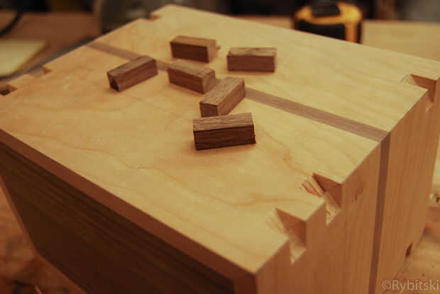 Splines se utilizan para fortalecer las articulaciones y darle un toque decorativo. Realista si tuvieras un pegamento adecuado su caja será lo bastante fuerte como para no necesitar tiras, pero esto era parte de mi diseño. Usé la nuez contrastante para resaltar los bordes.