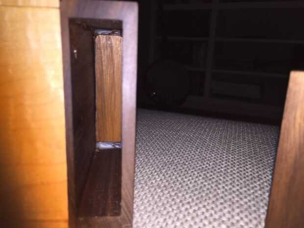 Esto es muy similar al resorte de bloqueo, pero tendrá que ser tamaño para encajar en la parte superior de la cubierta del compartimiento. Medir la profundidad del recorte y restar su compartimento oculto, esta es tu ventana para adaptarse a su mecanismo. Corte una tira pequeña de madera a lo largo del grano, arena o cortar un cono por un lado, pégalo a un bloque de madera que quepa en el hueco que tienes en la parte superior de la carcasa. Una vez que lo tienes cortado a la medida, pegar en la parte superior de la carcasa.