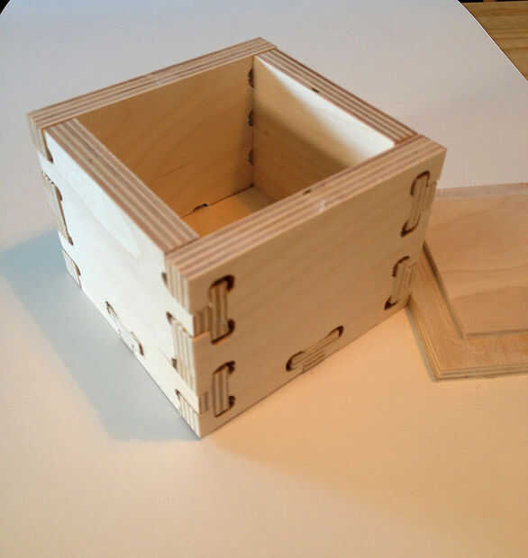 Yo estoy construyendo algunas habilidades con mis 2 Shapeoko y decidí cortar un cuadro que utiliza carpintería y monta sin pegamento. Usando una técnica de carpintería había llamada "Martillo espiga", hice algunos estudios para traducir para CNC e hicieran cortes de prueba para asegurarse de que tenía mi archivo coincide con la tolerancia de la máquina. Luego, hice el diseño para hacer una caja de 4 pulgadas con tapa que corté de madera contrachapada de abedul Báltico de 1/2 pulgada.