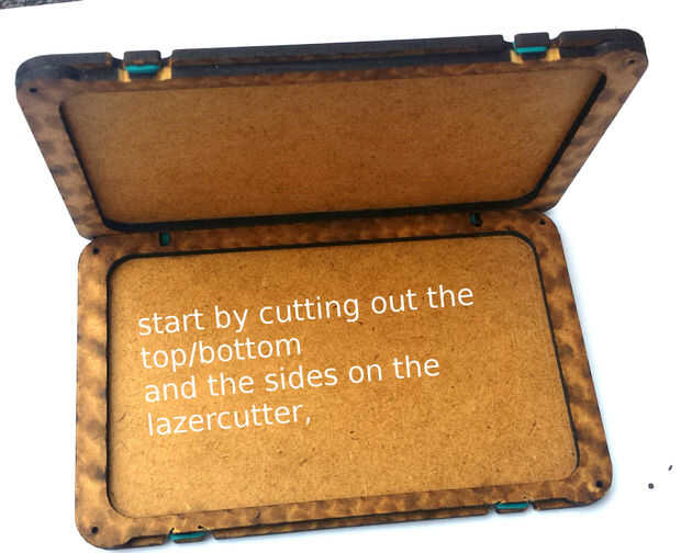 aquí es una caja con un embutido hecho enteramente en un cortador láser.  El software utilizado fue abierto Inkscape, con un plugin para generar el cuadro con pestañas.La caja sí mismo fue hecha de madera contrachapada de nogal de 1/4, y el embutido
