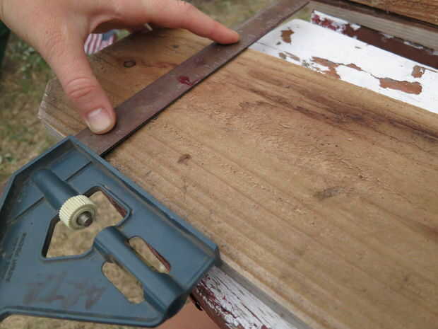 Para las tablas laterales y la parte inferior que me aseguré que estaba marcando las juntas, así que le corte la parte angular de la Junta de la cerca. Para las mejores tablas hice justo lo contrario y marcadas en las placas de manera utilizaría la porción angular de la Junta de la cerca.