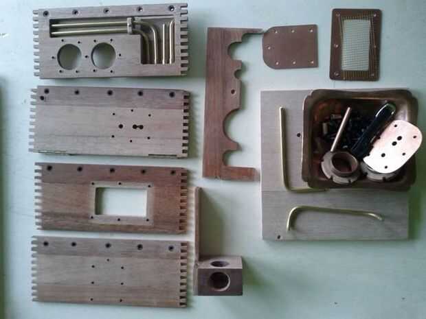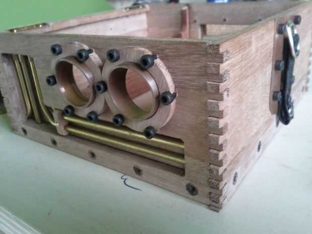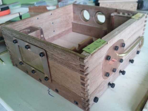 En la parte posterior de la caja sólo coloqué algunos tubos de latón y tubos de salida de ventilación y una placa ovalada de cobre.
