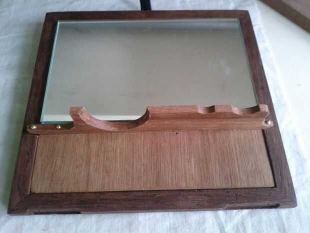 Porque la tapa se convierten en una muy pesada con el espejo que hice soporte bisagra de una placa delgada de cobre para sostener la tapa de doblarla.