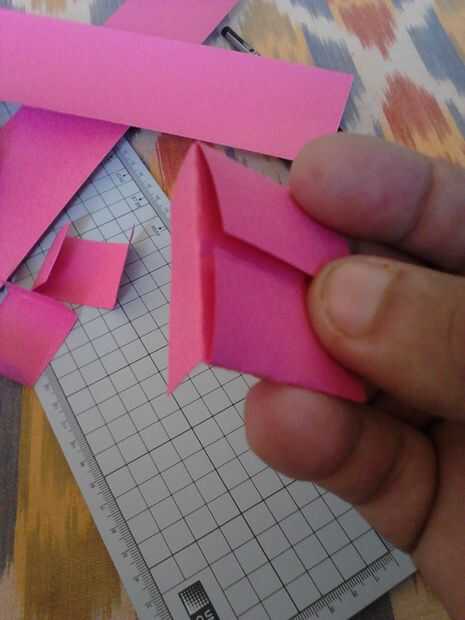 2 piezas y se les superponen Cruz sabio para que queden a 90 grados entre sí. Ahora doblar uno de papel a tamaño en el otro papel. La vuelta y hacer lo mismo para el otro papel. Abra los documentos y apilarlos. Hacer 2 más estas plantillas de 6 unidades.