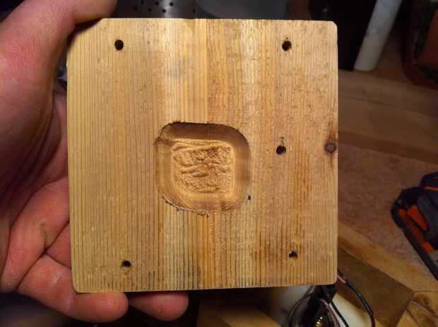 Con una broca pequeña (del tamaño o justo por debajo del espesor de los tornillos de construcción) en la placa base. Me aseguré de que se alineen con el centro del espesor del marco, así que 3/8" del borde. Hacerlos así que no están en los empalmes de la esquina ya que no se trabajan (o bien). También tuve que retirar algún material de la placa base usando un router para poder montar sobre el zócalo del alumbrador del cigarrillo.