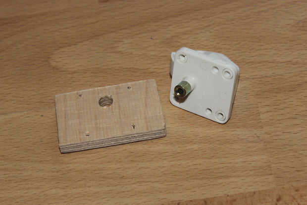 Ya que es más fácil de conectar la cerradura antes de la placa superior se atornilla a los lados te sugiero hacerlo en este momento (aunque tendrás que aflojar más adelante antes de pintar el cuadro). Tienes que montarlo en una placa de madera pequeño y perfore un agujero de 7 mm en él, para ajustar el imán (como se muestra en la segunda foto).