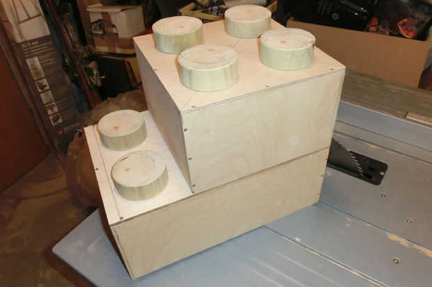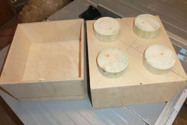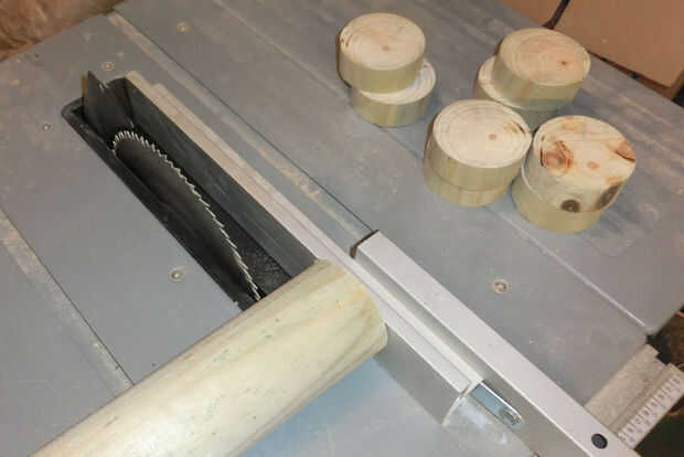 Utilice la Sierra de mesa para cortar los discos de madera a una altura de 2 cm y pegamento para madera y tornillos para sostenerlos en lugar.