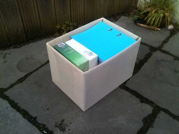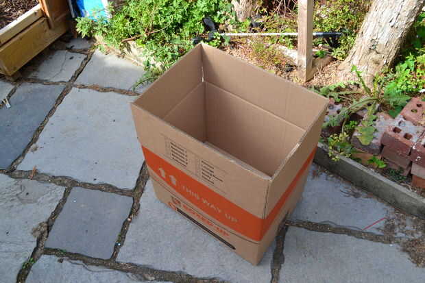 Elegí una caja bolsa de cartón estándar tamaño (33 cm x 46 cm) para este proyecto ya que me permitía utilizar todo el espacio disponible en un estante de la puerta. Acabé haciendo 4 cajas que utilizan todo el espacio del estante.