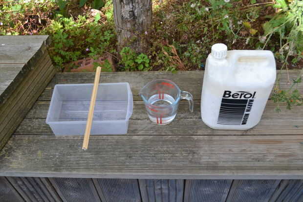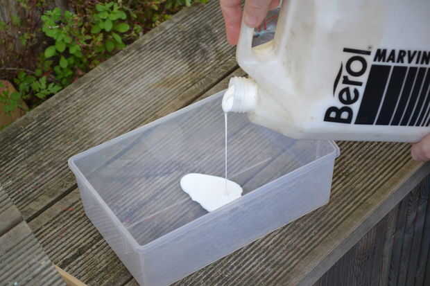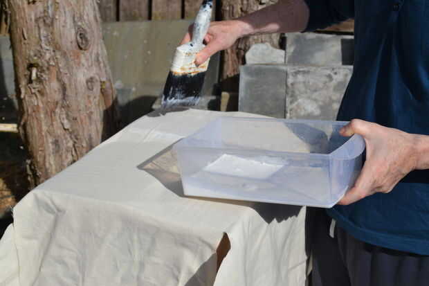 Una cantidad de pegamento PVA y añadir agua (debe ser capaz de cepillo y para untar pero no demasiado que moquea). Cada 'lado' de lona se adhieren a su lado apropiado de la caja y poner en remojo con la solución de pegamento con un pincel ancho...