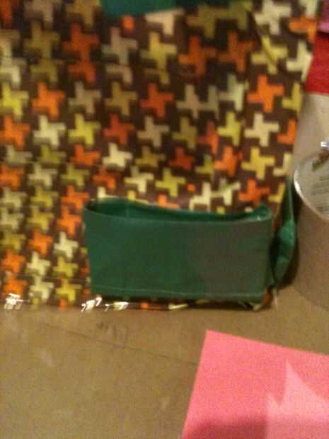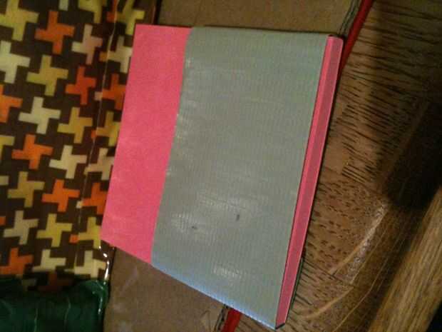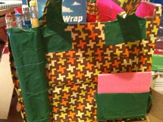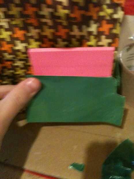 En primer lugar, lo mismo que siempre: Envuelva el paquete de nota adhesiva en el lado adhesivo hacia fuera de la cinta, incluyendo la parte inferior. Pegarla a la caja y cubrir con cinta adhesiva normal. Pegar el Bloc de notas adhesiva en y disfruta!